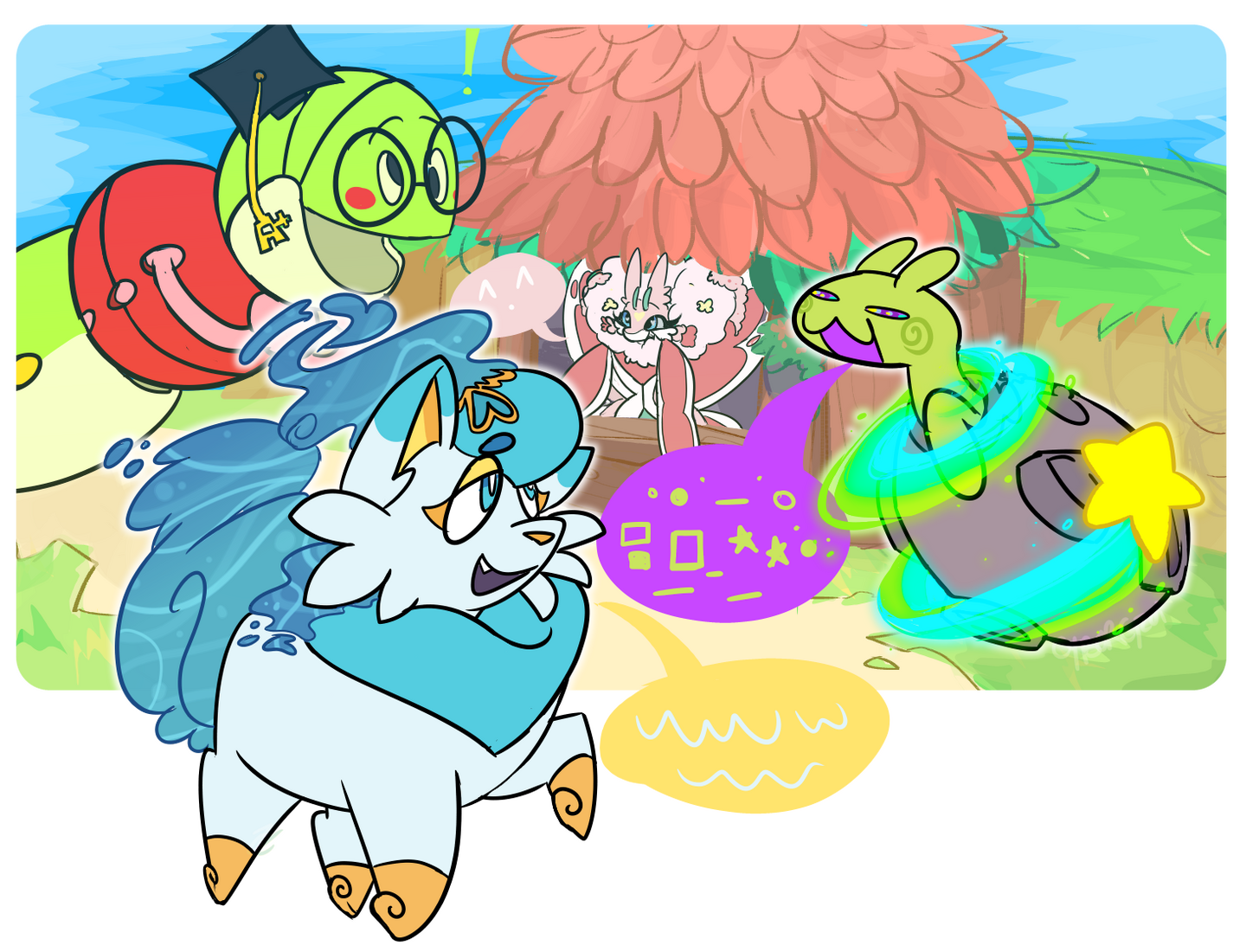 ❥ Original backgrounds can be drawn for +$25; I do lineless styled scenes, and can provide the finished background image without the characters in the environment if requested.